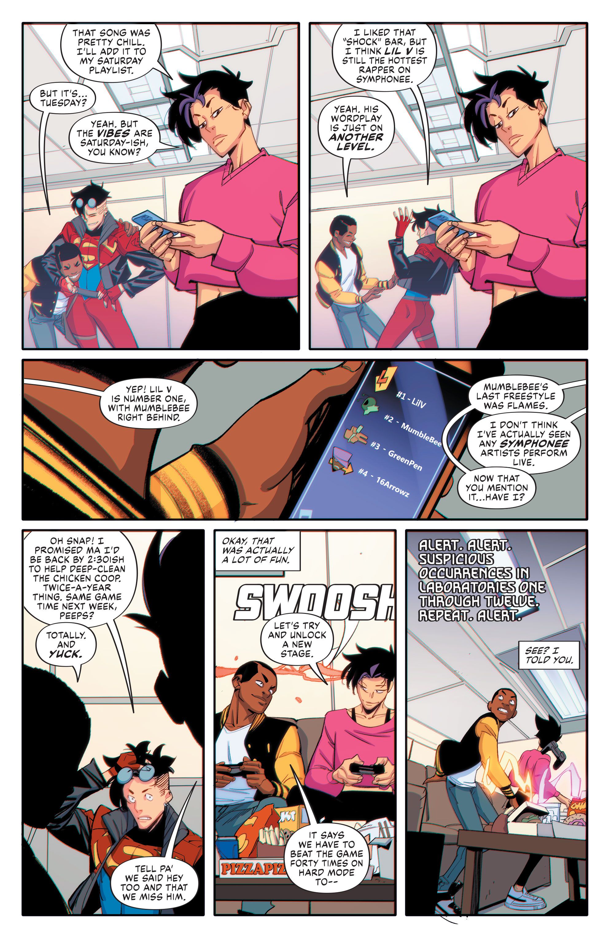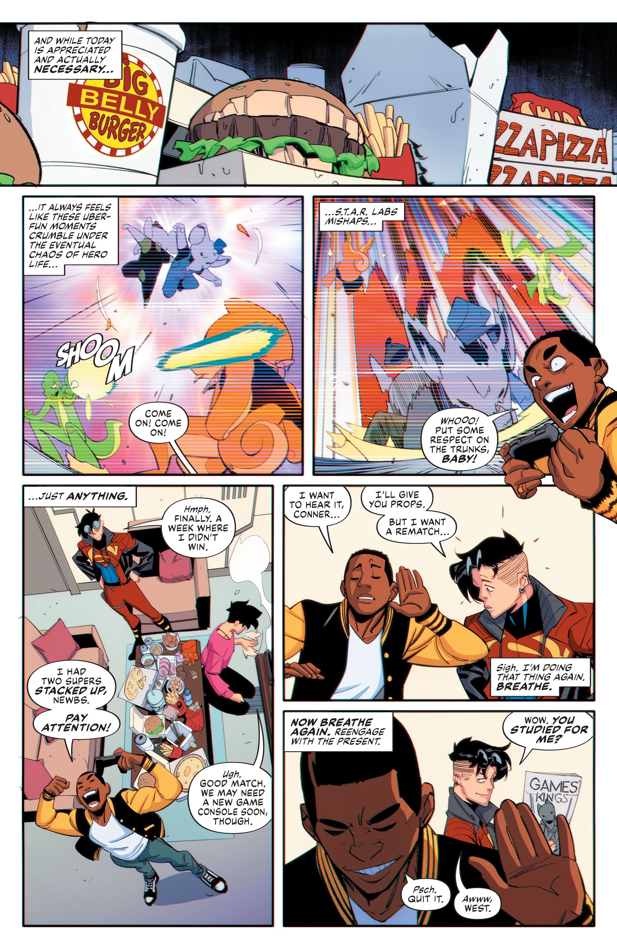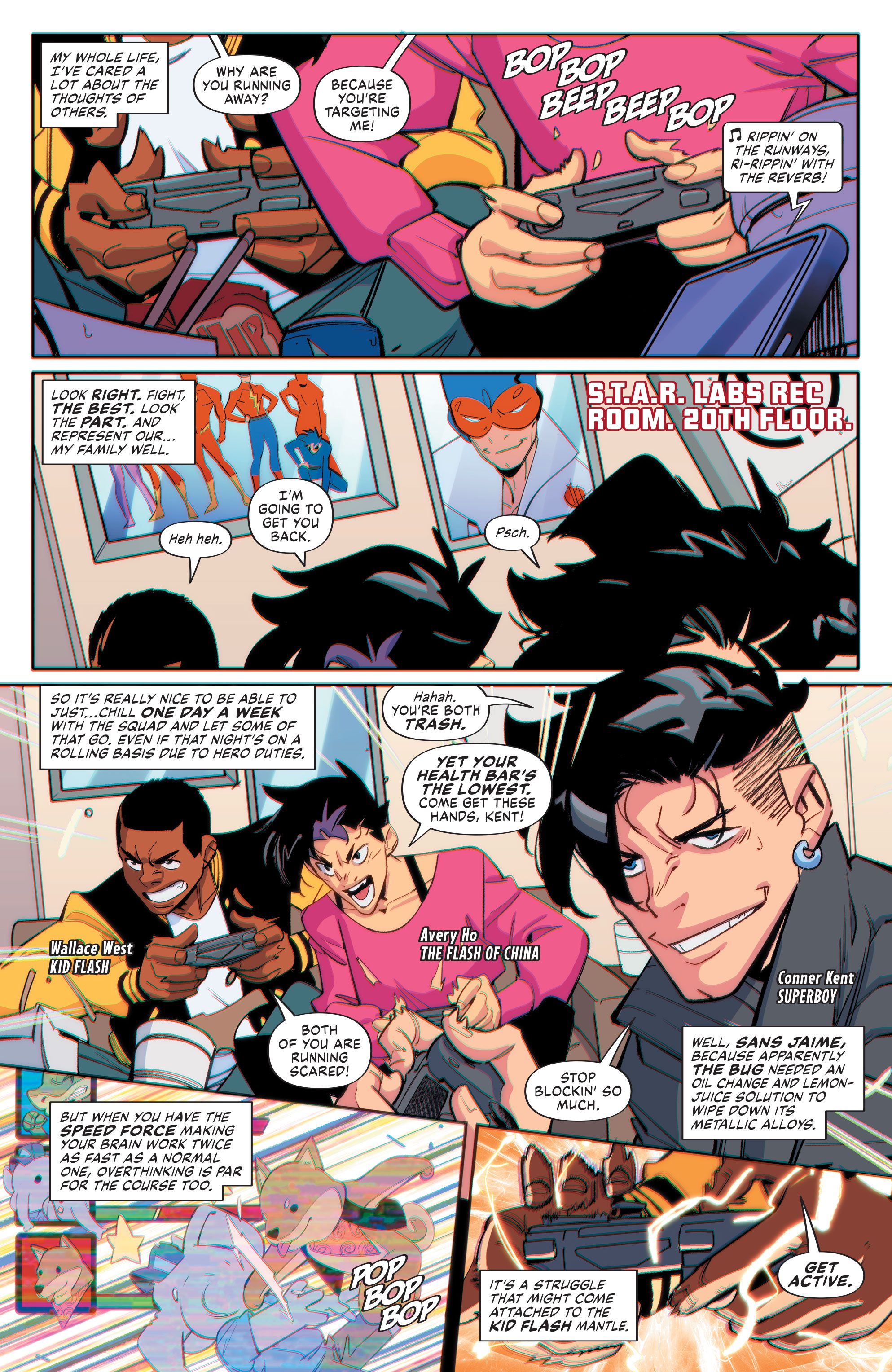 En un adelanto de Fuerza de velocidad #1 Por Jarrett Williams y Daniele Di Nicuolo, Kid Flash está tomando un tiempo de inactividad con Superboy Conner Kent y Avery Ho, Flash of China. Los tres están jugando videojuegos a supervelocidad y en general pasan una velada agradable.