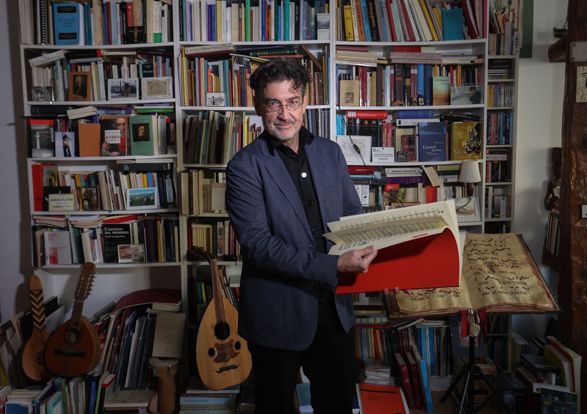 Testigos de su dedicación dentro de su estudio son sus laúdes, sus códices de anticuario, sus partituras, sus tratados de musicología y filosofía junto a los que Sánchez-Verdú urde, entre la poesía y el eco persistente de tradiciones y vanguardias, las obras que va rematando. Inventa y rehace géneros, busca nuevas formas, pero si hay algo que le seduce más que nada es la ópera. Para él, todo un camino de indagación: “Cuando empiezo una es como si me dispusiera a hacer una tesis doctoral”. De ambas cosas sabe, como musicólogo, doctor por la Universidad Autónoma de Madrid y profesor en el Real Conservatorio de la capital, entre otros lugares y como creador con algunos títulos de éxito en ese campo como Gramma, El viaje a Simorgh, basada en la obra de Juan Goytisolo o Aura, inspirada en la novela de Carlos Fuentes.
