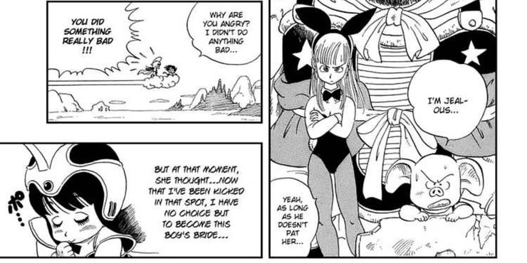 Cuando Goku buscaba al aparentemente mítico Maestro Roshi, vio a Chi-Chi y se ofreció a llevarla a casa de Roshi antes de regresarla a casa. Si bien su enfoque inicial fue caballeroso, Goku, sin darse cuenta, agredió a Chi-Chi agarrándola de la entrepierna para ver si era un niño o una niña basándose únicamente en su anatomía. Chi-Chi está conmocionado y humillado por esta acción y golpea a Goku en la cara, diciéndole que lo que hizo no estuvo bien. Sin embargo, después de que Chi-Chi regañó a Goku por sus acciones inapropiadas, percibió el asalto de Goku como algo que significaba que ahora los dos están juntos románticamente. Chi-Chi creía que, dado que Goku la tocó de esa manera, tenía que convertirse en su novia, algo que eventualmente sucede.