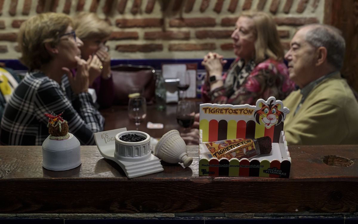 Bien conoce las mieles del triunfo Toño González, que junto a su hermano Javier y el equipo que conforma con Nerea Gutiérrez, María Barrios y Laura di Mauro dirige Los zagales de la abadía, establecimiento en el centro de Valladolid. El concurso, sentencia, “ha revolucionado Valladolid y la ha puesto como referente español de tapeo” en forma de una exigencia en autores y clientes que se traduce en más nivel. Ellos han ganado el concurso en varias citas y de su afamado Tigretostón venden 45.000 unidades anuales, tal volumen que les ha hecho aliarse con Cascajares para que se lo fabriquen con la misma calidad. “Es un patrimonio gastronómico que se ha creado sin darse cuenta y que se puede afianzar si sale bien”, reitera el hostelero, que recuerda que el vino de las cinco denominaciones de origen en torno al Duero sirve como prestigioso telonero para animar a consumir comida de la misma calidad que los caldos. Los zagales han triunfado en múltiples competiciones, premios de los que presumen mediante elegantes pendones sobre la barra del establecimiento, y aparece entre los puntos imprescindibles por donde los vallisoletanos llevan a sus visitantes para degustar puros de sardina, calamares con un toque de hielo seco o el tradicional cordero con un curry formado por 26 especias.
