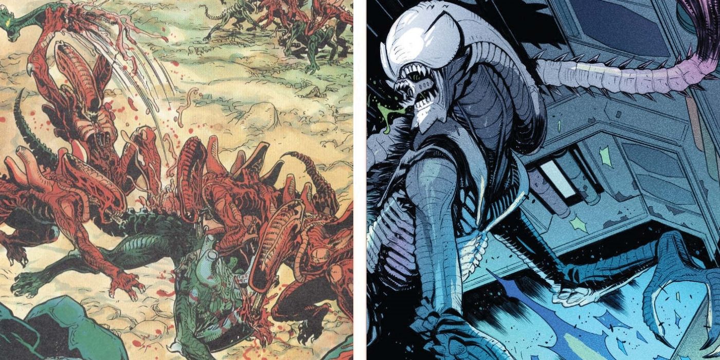extranjero anual El número 1 de 2023 de Declan Shalvey y Danny Earls llegará a las tiendas en octubre de 2023 y promete ser una extensión del actual Extraterrestre serie, en la que se introdujo recientemente la nueva raza de Xenomorph antes mencionada: el Xenomorph blanco. Al igual que el Xenomorfo rojo, el Xenomorfo blanco parece ser una mutación natural que generó una subespecie completamente nueva. Por lo general, los xenomorfos solo se ven diferentes de la huella genética de sus anfitriones (es decir, AVP‘s Predalian y extranjero 3‘s Xeno-perro). Es por eso que se puede concluir con confianza que este nuevo Xenomorfo blanco es una desviación natural, ya que nació de un huésped humano y aún se ve diferente de un Xenomorfo clásico.