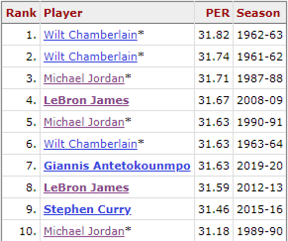 El vigente MVP y líder de los Milwaukee Bucks, a sus 25 años, es el jugador que mejor define la máxima del menos es más: con 30,9 minutos por partido está completando la séptima mejor temporada de la historia si nos basamos en el índice de eficiencia (PER), tan solo por debajo de los registros de Chamberlain, Michael Jordan y el mejor LeBron James a nivel estadístico, el de la primera época con los Cavaliers. Este dato, nada desdeñable, debería dar pistas a aquellos que estos días discuten para quién debería ser el MVP de la temporada regular.