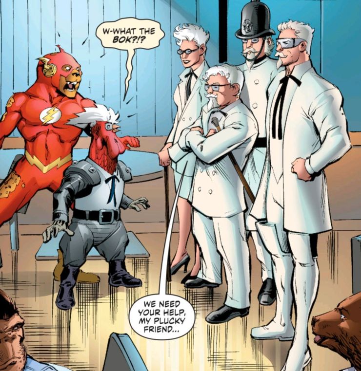 La querida mascota de KFC, el Coronel Sanders, llegó a DC y levantó varias cejas ante su colección de Coroneles de todo el multiverso.