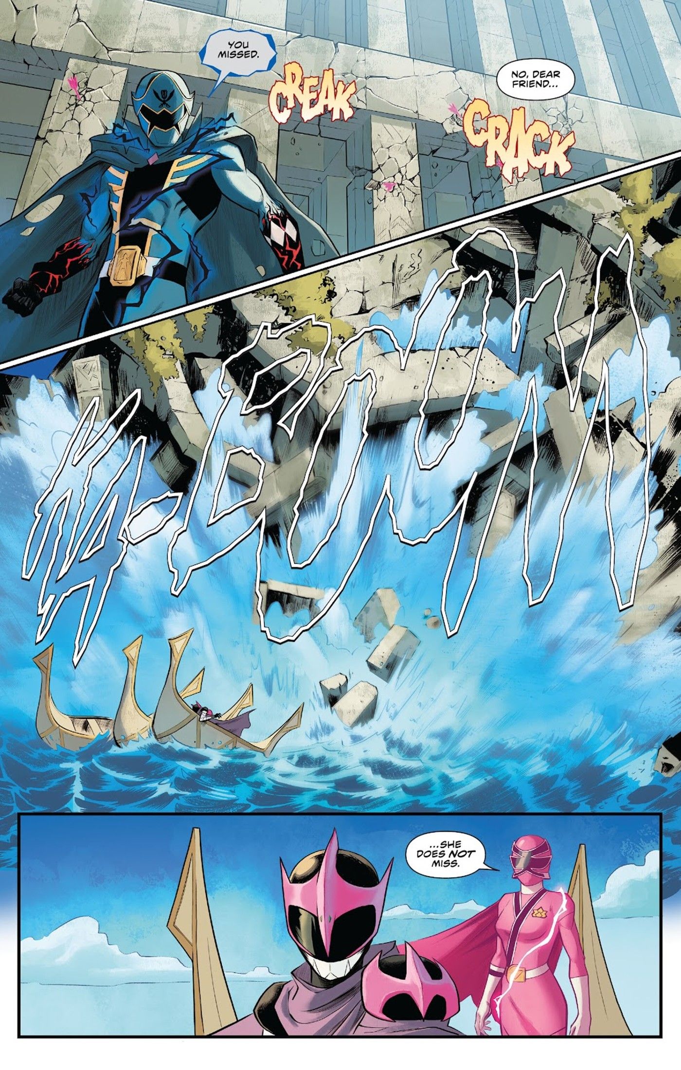 Su última hazaña llega Power Rangers Unlimited: Los Maestros Morphin #1 de Ryan Parrott, Rachel Wagner, Daniel Bayliss, Arthur Hesli y Ed Dukeshire. Después de que Lord Drakkon se sacrifica para revertir el control mental de Dark Spectre sobre Kimberly, ella se embarca en un viaje hacia Morphin Grid junto con el Emisario Rosa para encontrar a los Morphin Masters.