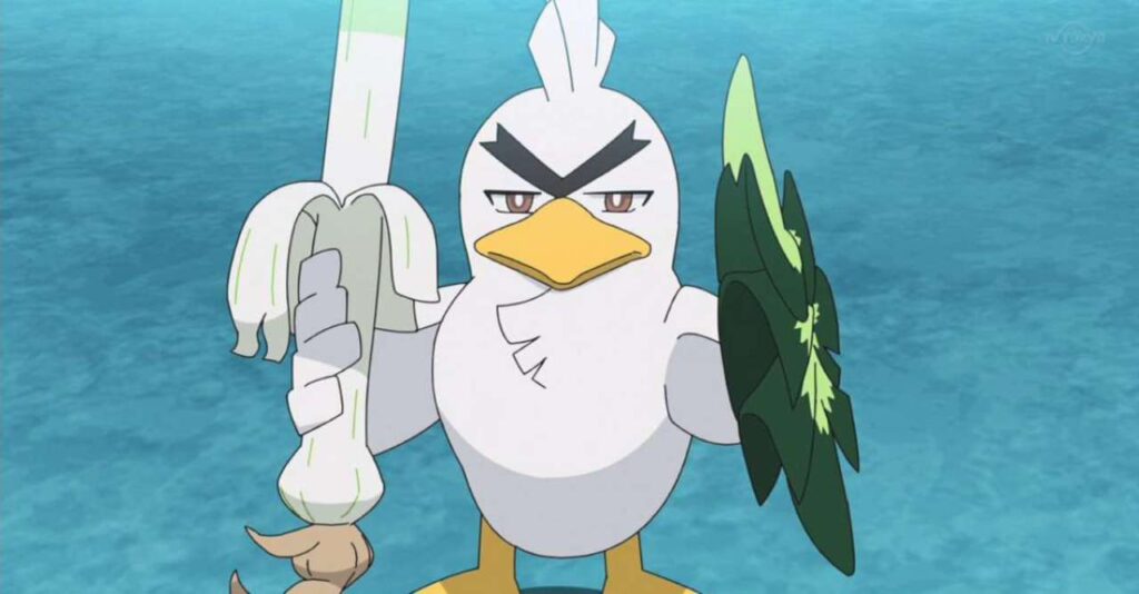 Pokémon tiene más de novecientas criaturas que han ayudado a que la serie aumente en popularidad, y muchas de estas bestias son versiones evolucionadas de los propios monstruos. Con Sirfetch’d, el monstruo de bolsillo tipo Fighting todavía usa divertidamente plantas para su armamento, pero las ha modelado en una espada y un escudo, lo que lo convierte en el complemento perfecto para el último videojuego. Ash pudo conseguir un Sirfetch’d él mismo en el anime gracias a la evolución de su Farfetch’d.