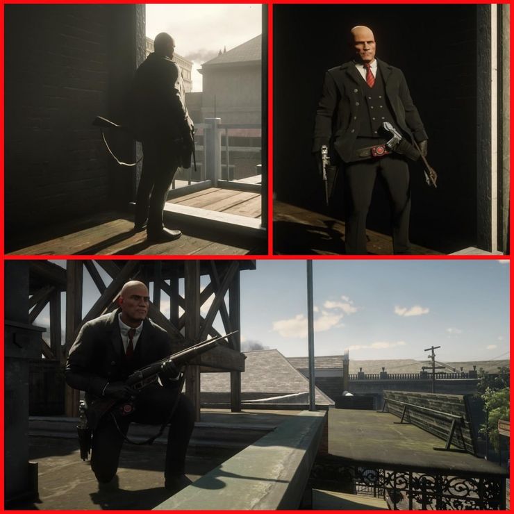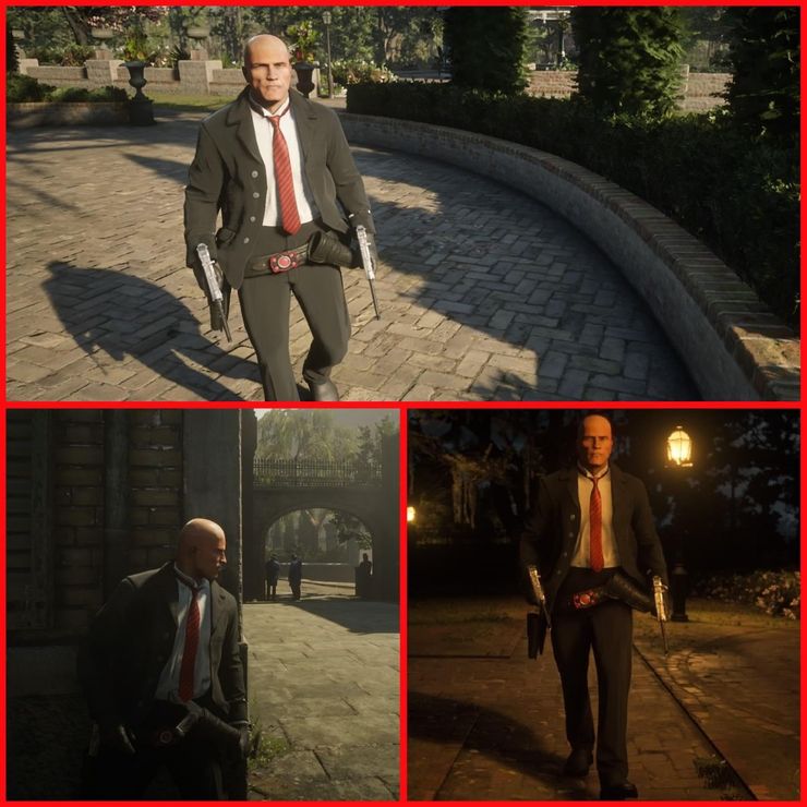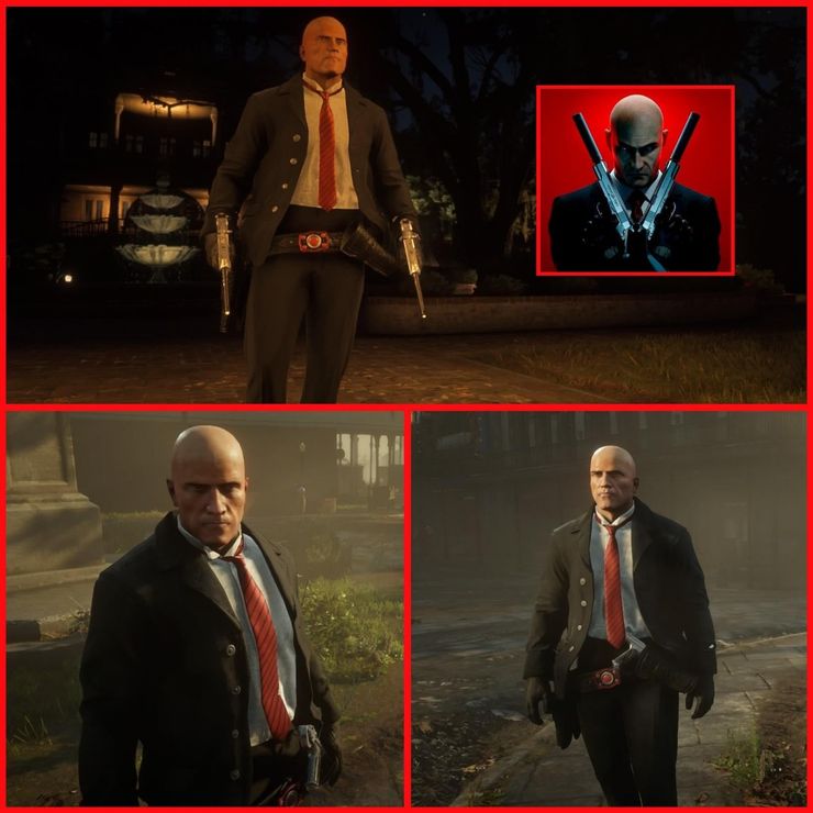 Aunque Sicario‘s El agente 47 está descansando un rato, parece que seguirá aceptando contratos. Mas o menos. Gracias al usuario de Reddit, dennymcclane, el asesino elegantemente vestido ahora se escabulle por los gustos de Saint Denis en Red Dead Online. Los esfuerzos de personalización del personaje de Redditor dieron como resultado un Agente 47 con una estructura algo más robusta, pero viste muy bien el icónico traje negro, corbata roja y camisa blanca impecable. Por supuesto, esta versión del 47 también tenía que lucir un aspecto calvo. Algunas capturas de pantalla de la creación muestran al personaje en poses que también lo hacen casi imperceptible del trato real. Échales un vistazo en las imágenes a continuación: