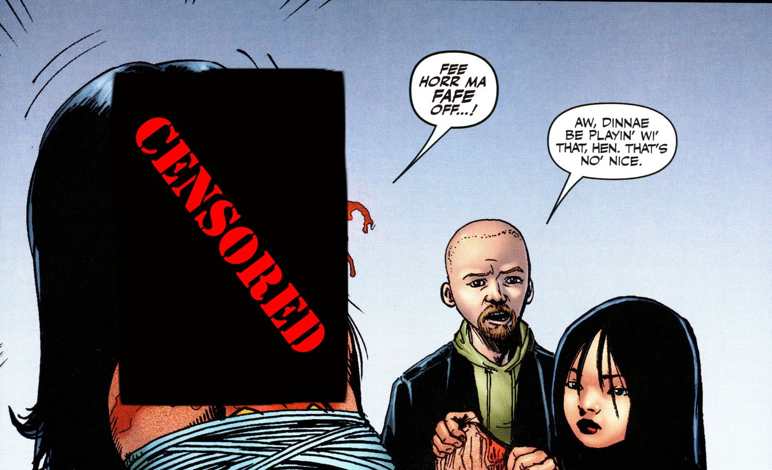 El “crossover” no es una gran historia y ninguno de los personajes de Marvel y DC tiene un nombre específico, pero proviene del original. Niños equipo creativo de Garth Ennis y Darick Robertson. Creado para el Fondo de Defensa Legal del Cómic Cómics de la libertad tema de recaudación de fondos, la historia tiene apenas cuatro páginas, pero aún así logra ser una de las más impactantes Niños cómics de todos los tiempos.