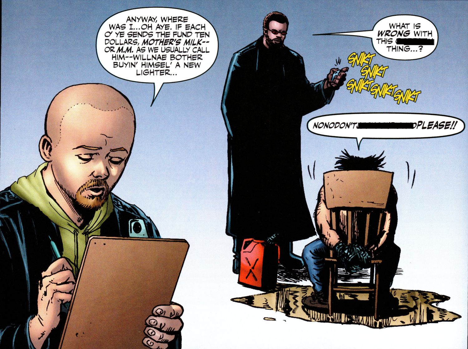 “/> Cuando las súplicas de Hughie quedan sin respuesta, la Mujer se suelta sobre la Mujer Maravilla y procede a cortarle la cara a la Amazona. Después de eso, Hughie aumenta la cantidad adeuda, mientras que Mother’s Milk aparece de pie junto a un hombre con un peinado muy distintivo, atado a una silla rociada con gasolina. MM intenta encender la llama de su encendedor y el efecto de sonido que lo acompaña sugiere que no es otro que Wolverine. Aunque ambos personajes nunca son nombrados, La breve historia sigue actuando como el único crossover de su tipo, por muy no oficial que sea.