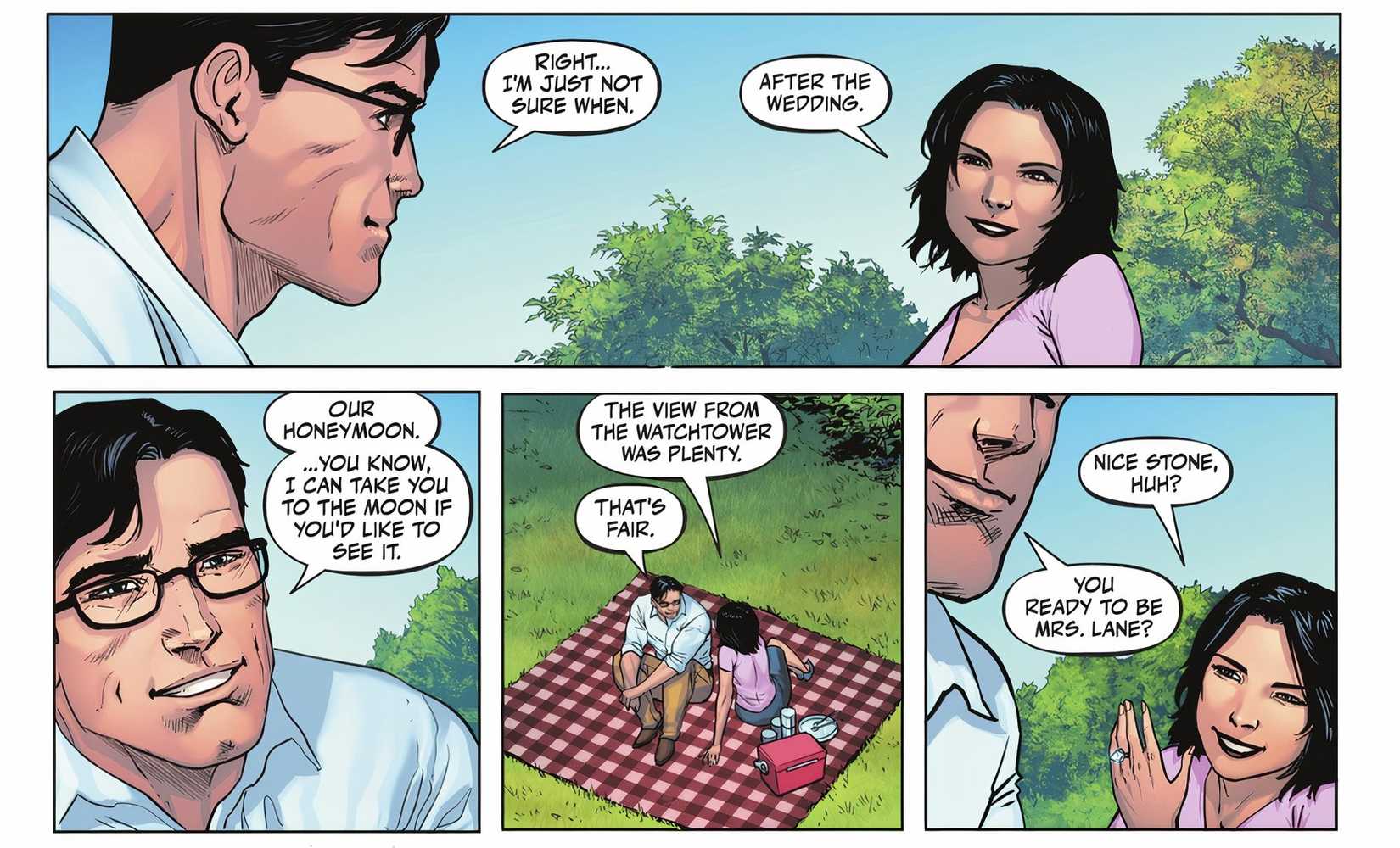 La Liga de la Justicia forja una alianza con Kong para luchar contra Mechagodzilla, los Titanes y un Skull Devil revivido. En Liga de la Justicia contra Godzilla contra Kong #7 Por Brian Buccellato, Christian Duce y Tom Derenick, Superman se recupera y se une a la lucha, junto con Godzilla. Gracias a Superman y Godzilla, la batalla concluye en cuestión de segundos. Superman recupera la Piedra del Sueño y envía a los Titanes de regreso a su universo mientras la Liga detiene a Lex Luthor. Con el Universo DC salvado, Superman y Lois vuelven a celebrar su compromiso y discutir dónde deberían pasar su luna de miel.