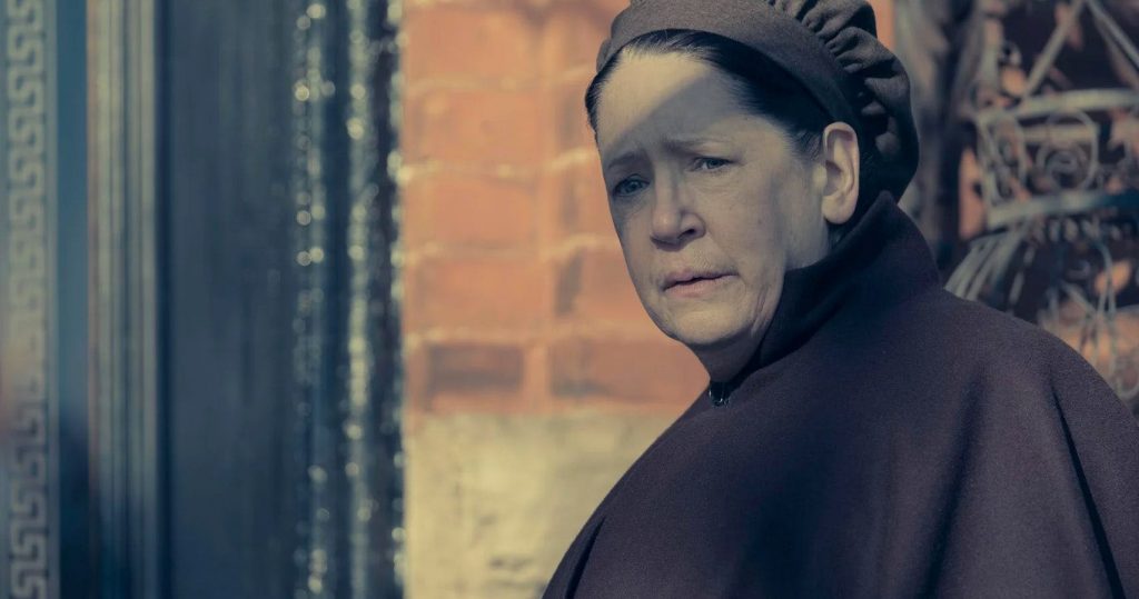 Si bien la tía Lydia parece tener un extraño afecto por Janine a veces, ciertamente lo muestra a los demás. Enfurecida cuando Janine no solo rompe el protocolo y se acerca a los Putnam para abrazar a su hija biológica, sino que también le ruega que regrese a su hogar, la tía Lydia comienza a golpearla sin control.