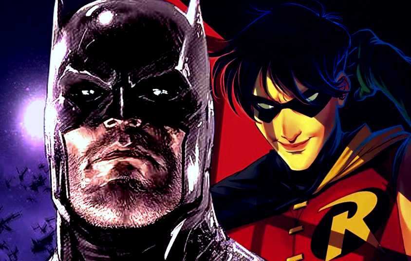 Batman v Superman: El amanecer de la justicia estableció un Batman experimentado y hastiado ya en la segunda entrega de la franquicia. En el momento, Batman de Ben Affleck era un justiciero cínico que descargaba su ira contra los criminales, rompiendo su regla de no matar después del asesinato de Robin por parte del Joker.. Batman v Superman: El amanecer de la justicia confirmó la muerte de Robin con una breve escena en la que Batman mira el traje dañado de su compañero, que fue desfigurado algún tiempo antes por el Joker. Según la historia de fondo del DCEU de Harley Quinn, ella también jugó un papel en la muerte de Robin.