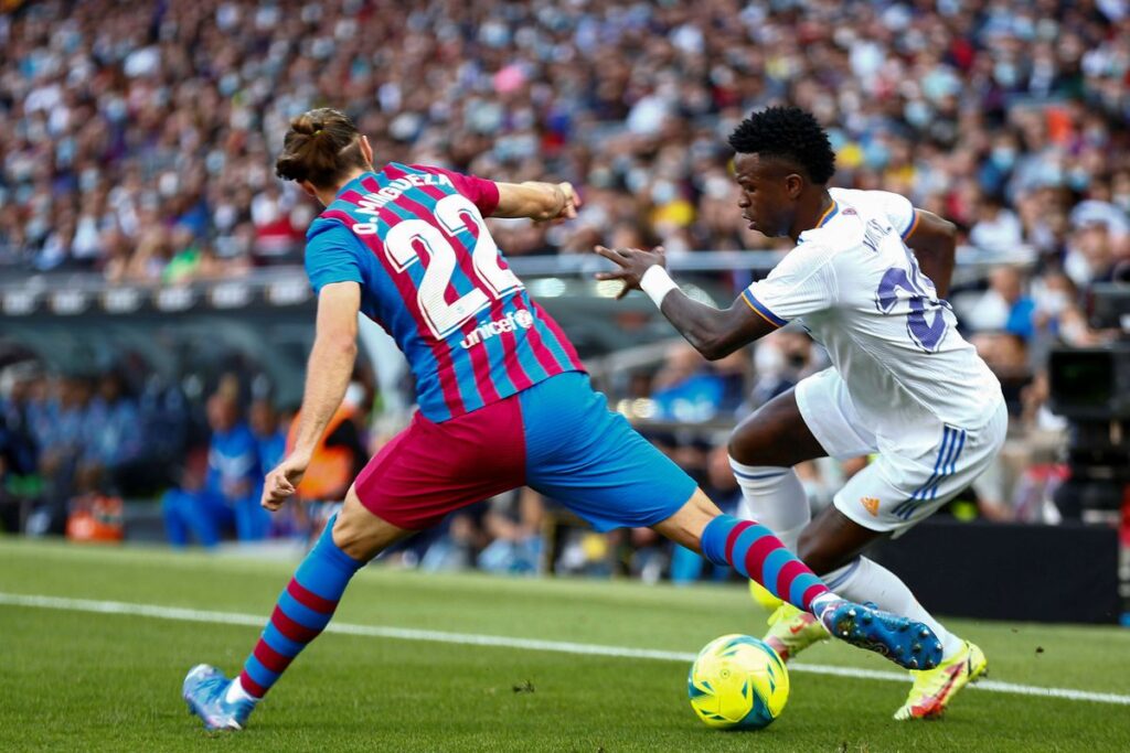 El caño es un disparador de alegría, y también un termómetro de confianza. Vinicius, el dominador de esta suerte en la Liga, la temporada pasada se dejaba llevar por ese impulso menos de la mitad de las veces que ahora. En las once jornadas que ha disputado el Madrid ha completado ya seis, tantos como en todo el curso pasado. En Europa, solo Emmanuel Dennis, del Watford, y Trincão, en los Wolves, llevan uno más que él. Fuentes de su entorno atribuyen el salto a que se encuentra más cómodo bajo el mando de Carlo Ancelotti, lo que le invita a arriesgar más que con Zidane, e insistir en la intensificación de su esencia, que describen como de regates y caños. Lo mostró desde el primer partido que jugó con el Castilla en Segunda B, en agosto de 2018. Acosado por dos rivales del filial del Las Palmas, escapó tirando un túnel de tacón y corrió hasta que lo derribó de una embestida un tercer contrario.