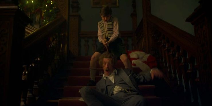 Si bien esto puede parecer un momento tonto y alegre, o una representación triste de Arthur cayendo en desgracia una vez más, anterior Peaky Blinder escenas significan que es un presagio mucho más oscuro. En Peaky Blinders temporada 2, episodio 3, Tommy Shelby (Cillian Murphy), Arthur Shelby y John Shelby (Joe Cole) están entrevistando a hombres sanos para que los utilicen en uno de sus esquemas. Digbeth Kid (James Eeles), también conocido como Harold Hancocks, les muestra una funda, y Arthur y John sacan sus armas antes de que Harold revele que es una pistola falsa hecha de madera. Tommy Shelby lo examina y hace la mímica de dispararle a Arthur y dice “estallido” y Arthur se agacha mientras finge dispararle a Tommy. Cuando Tommy le hace lo mismo a John, John finge morir, echando la cabeza hacia atrás y exhalando su humo. Esto es un prefacio de los acontecimientos de Peaky Blinders temporada 4, episodio 1, “The Noose”, en el que John es asesinado por una lluvia de balas y se culpa a Tommy de instigar la guerra que condujo a la muerte de John. El hecho de que a Arthur le disparen una vez más con una pistola de madera, pero esta vez finge morir en lugar de devolver el fuego, sugiere que morirá en una lluvia de balas, y el uso furtivo del hijo de Tommy y una pistola Tommy simulada sugiere nuevamente que Thomas Se podría culpar a Shelby por la muerte de su hermano.