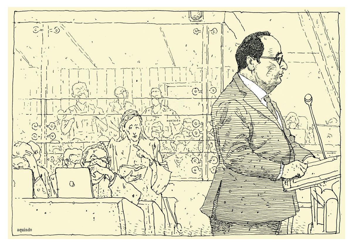 Mientras aguardábamos hacíamos apuestas: ¿habrá un incidente en la audiencia? ¿Saldrá de su cabina Salah Abdeslam, como lo hacía al principio del juicio, como después no ha vuelto a hacerlo? Un amigo abogado tenía su propia previsión: en el momento en que Hollande se acerque a la barra, y antes incluso de que abra la boca, Abdeslam se levanta y, apuntándole con el dedo, grita: “¡El acusado es él! ¡Es él el que debería estar en el banquillo!”. Confesémoslo: por muy partidarios que seamos de la serenidad en los debates, esperábamos algo parecido. No ocurrió nada. Sí: una confusa y de todos modos demasiado tardía agitación de Abdeslam, al que el presidente del tribunal le cortó de inmediato la palabra porque entre presidentes se echan una mano. Hollande estuvo digno, articulado, un poco rígido pero sin renunciar al humor en ningún momento: Hollande en persona. Los abogados de las partes civiles le hicieron preguntas respetuosas y en su mayoría inútiles, y él respondió en síntesis que si volviera a suceder actuaría de la misma manera.