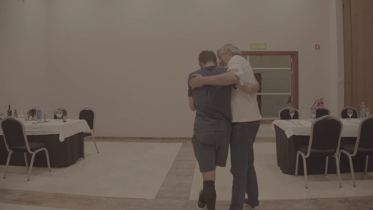 Superman, a la izquierda, y Eusebio Unzue, en la escena de la despedida del equipo del colombiano.