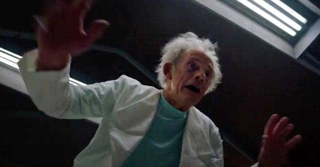 Estas promociones especiales de acción en vivo imaginaron a Lloyd y Martell como Rick y Morty del universo C-132 y no solo recrearon algunas de las mejores escenas de la serie, sino que también imaginaron algunas nuevas y divertidas tomas de otras. Para la broma de “100 años” en particular, el director detrás de los cortos Paul B. Cummings le dijo a Christopher Lloyd que se “desquiciara un poco” para ese momento, ya que refleja lo desquiciado que estaba Rick en la primera temporada de la serie animada original. De hecho, vieron el clip antes de filmar la escena para que sucediera correctamente. Mira el clip en cuestión a continuación: