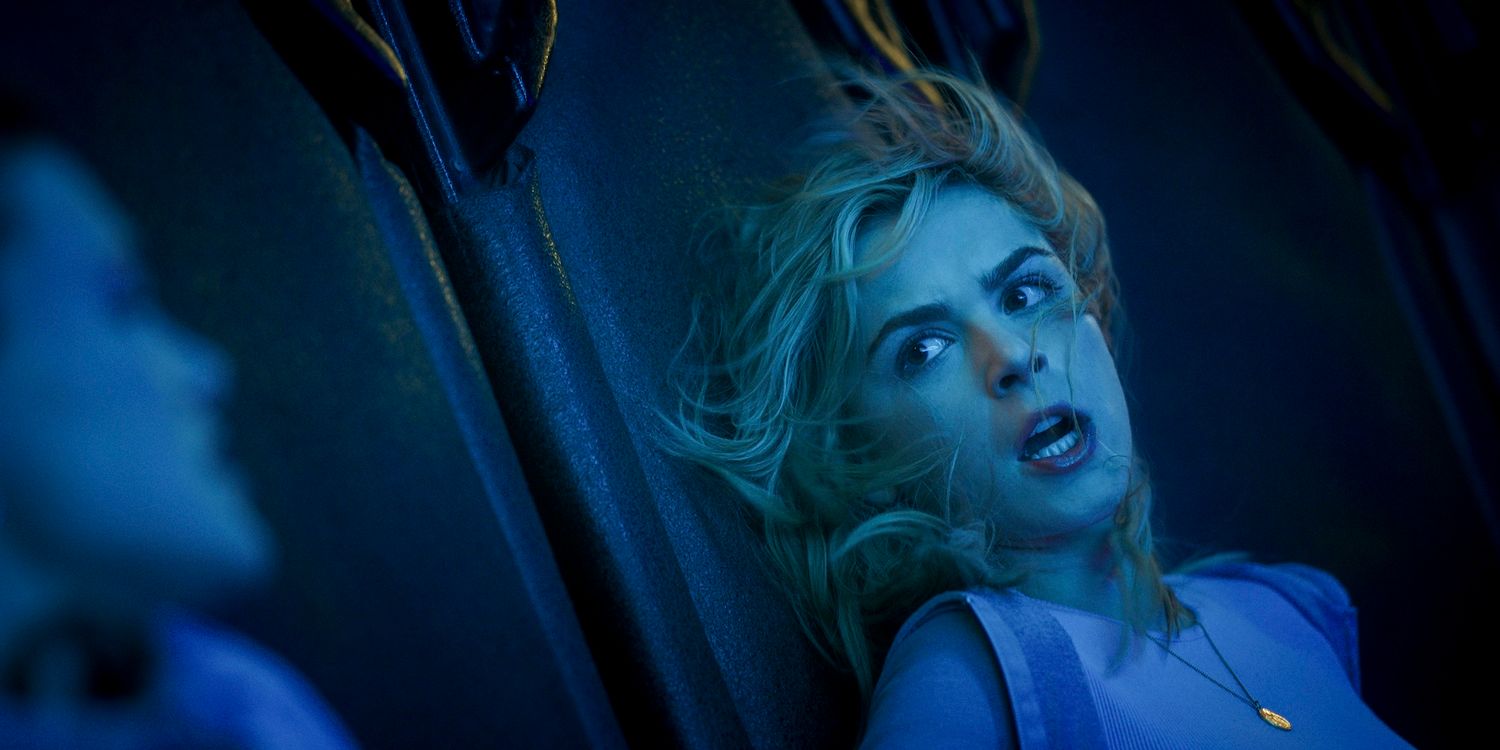 Nahnatchka Khan: Creo que quería adormecerte en este mundo, y no comenzar desde un lugar demasiado oscuro, y luego sorprenderte cuando da un giro difícil con esa primera secuencia de muerte y decir: “Oh, “Está bien, vamos a por ello, no vamos a controlar nuestro swing aquí, hay un slasher suelto, habrá algunas muertes sangrientas y algunos momentos espantosos”. En realidad, se trata simplemente de comprender que esas dos cosas pueden vivir juntas y coexistir, por lo que creo que siempre liderar con comedia permite que brille el horror. Esas no son escenas de comedia, ¿verdad? Se trata de eso y luego, por supuesto, el elemento del viaje en el tiempo también tiene que entrar en juego y incluirlo.
