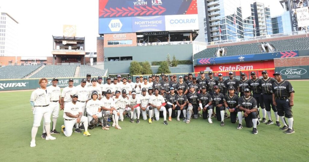 El Hank Aaron Invitational anual, que lleva el nombre de la difunta leyenda del béisbol Hank Aaron, se llevó a cabo en Truist Park, el hogar de los Bravos de Atlanta, el domingo por la noche, y 44 de los mejores jugadores de béisbol de la escuela secundaria salieron al campo para mostrar su talento para la familia. amigos y exploradores profesionales. Lo que se destaca del evento es que estos jugadores tienen antecedentes diversos y reciben entrenamiento de algunos jugadores de béisbol negros notables, como Marquis Grissom, Brian Hunter y Howie Kendrick. El Hank Aaron Invitational proviene de la MLB-MLBPA Youth Development Foundation (YDF), y PopCulture.com habló con el director ejecutivo Jean Lee Batrus en el evento del domingo. Explicó por qué la organización quería ser parte de este evento que comienza en Florida en el Complejo de Entrenamiento Jackie Robinson en Vero Beach, Florida.