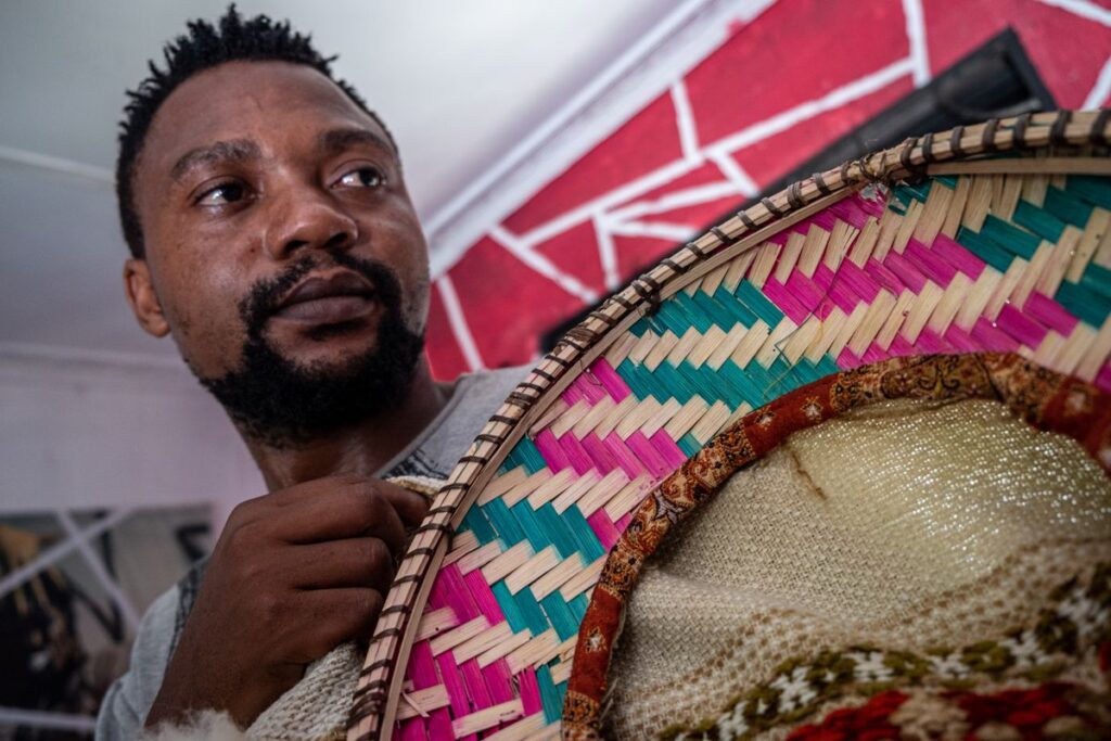 Malule se levanta y muestra algunos de los diseños que ha confeccionado para vídeos musicales, desfiles de moda, representaciones teatrales y películas: una máscara de piel de cabra con el borde de vivos colores rosa y morado y un tocado naranja hecho con cuerdas de sisal. En la pared cuelga una gran foto suya con un traje hecho de cestas de mimbre. “Con toda esa cultura pop de fuera de África”, observa mientras se pone una máscara, “estamos olvidando lo que tiene de especial nuestro estilo de vida tradicional”.