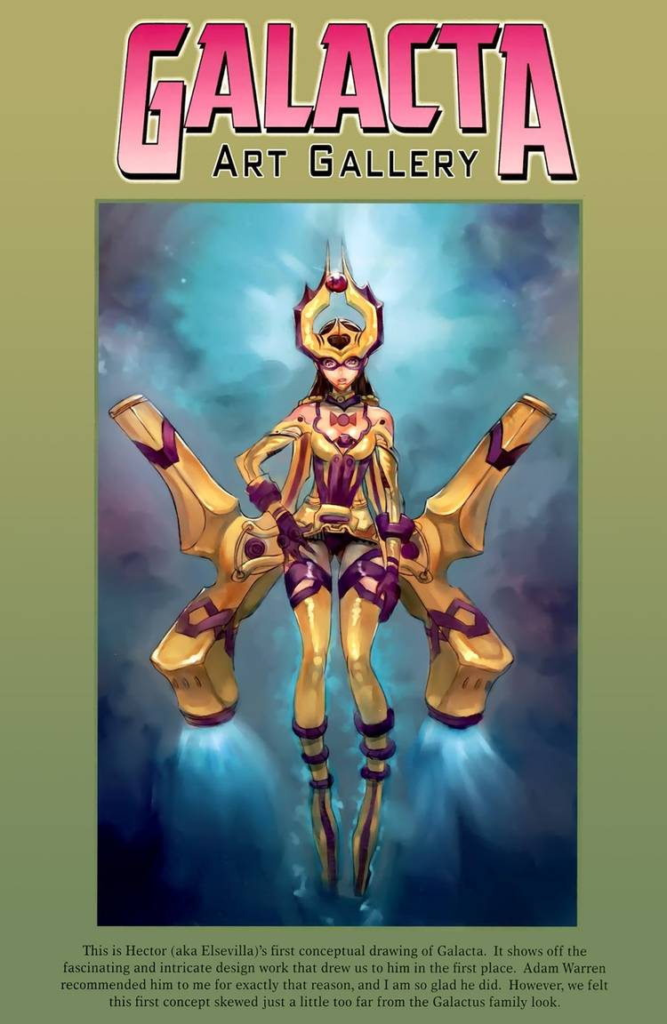 - Galacta, la hija de Galactus, fue creada por Adam Warren y Héctor Sevilla Luján, apareciendo en los cómics de Marvel en 2009 y 2010.