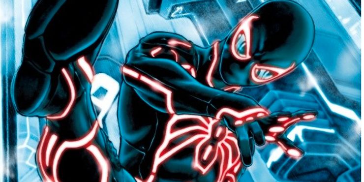 La mayoría de los personajes tienen un traje predeterminado al que siempre pueden volver, o obtienen trajes nuevos que se adaptan a sus aventuras actuales. Sin embargo, no sería extraño que se usara realmente una variante de traje diseñado con cubierta, particularmente en el caso de Tron. Spider-Man también apareció en un Tron cubierta variante para Amazing Spider-Man # 651, que tenía arte de Mark Brooks. El traje se usó en realidad dentro de esta serie cómica. Su traje puede brillar en varios colores, incluidos el verde y el rojo. Es un traje de sigilo que debutó durante un equipo con Black Cat, en el que ella comenta sobre él luciendo como “un anuncio de la nueva película de Tron. “El traje también tiene un modo adicional de amortiguación sónica”,desconcertante … todo, desde infrasónico hasta ultrasónico. “Si bien es parcialmente una broma, el traje se incorporó bien a la historia y es un aspecto bastante bueno para que el Webslinger lo saque de vez en cuando.