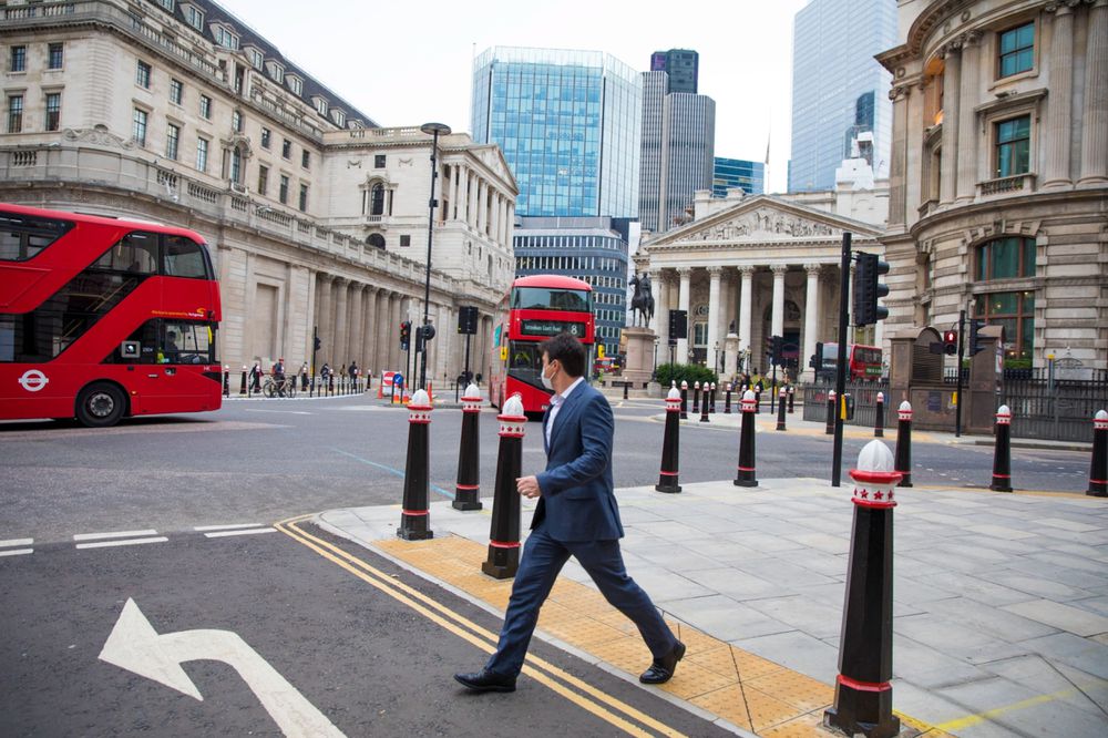 Un hombre camina por el corazón de la City.Jason Alden/Bloomberg