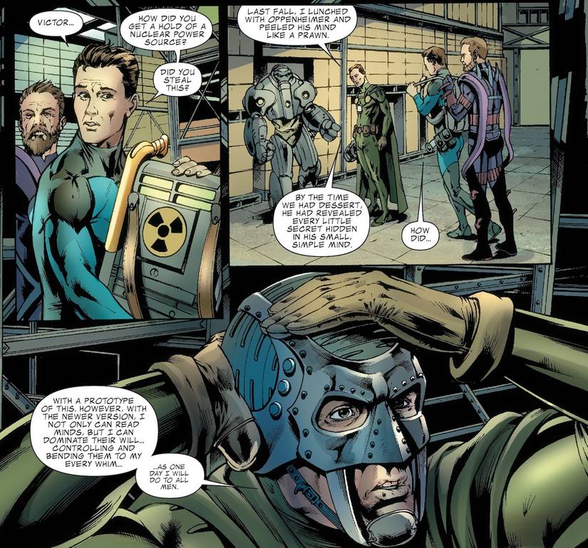 Más importante aún, se enfurece cuando Oppenheimer se burla de él en público, y le atormenta presenciar (pero no oír) una conversación entre Oppenheimer y Albert Einstein, que Strauss cree que puso a la comunidad científica en su contra. Quiere saber qué podría haber dicho Oppenheimer sobre él.. Pero hay alguien que logra aprender todos los secretos que Oppenheimer guarda en su mente: el Doctor Doom.