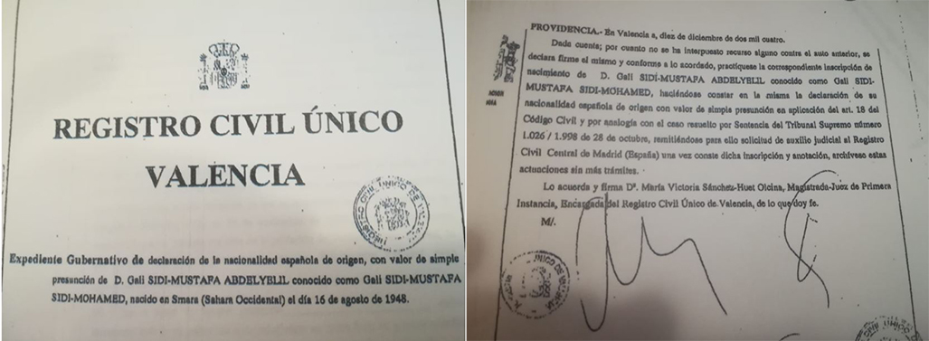 La jueza valenciana interpretó que Gali cumplía el requisito del Código Civil por esos 28 años en los que fue español antes de 1976. El expediente del líder saharaui incluye un certificado que acredita que no tiene nacionalidad argelina. Al ser Gali legalmente un ciudadano español, el Gobierno no podía negarse a su entrada en España en abril, cuando fue internado en el Hospital San Pedro de Logroño (La Rioja) en estado muy grave para ser tratado de la covid-19.