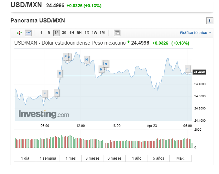 El precio promedio del dólar este 23 de abril es de $24.49 pesos.