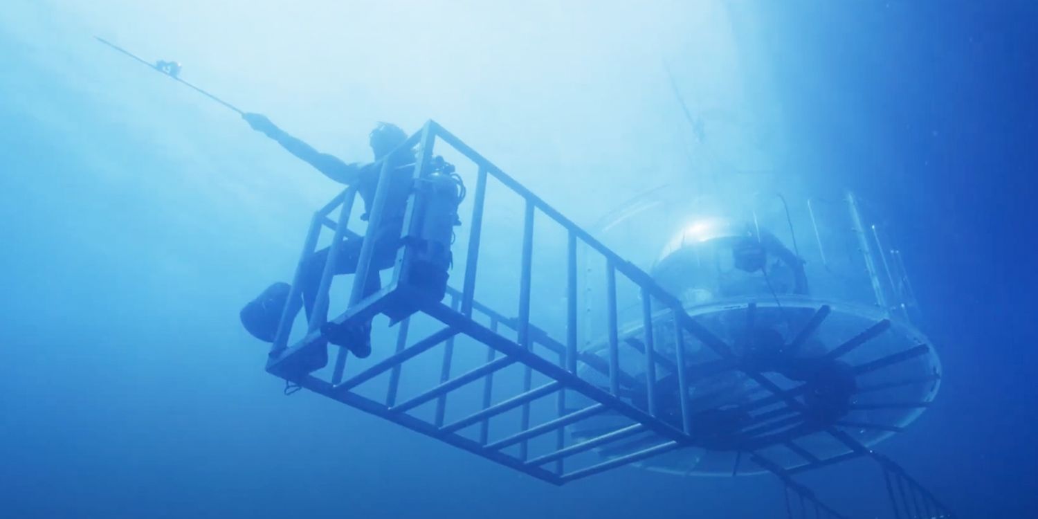 : [In Belly of the Beast] haces EARL, el cadáver de ballena falso desde el que observas a los tiburones, lo cual es una idea increíble. ¿Puedes hablar de dónde vino eso, y también cuánto tiempo estuvo dando vueltas esta idea antes de que se hiciera realidad?