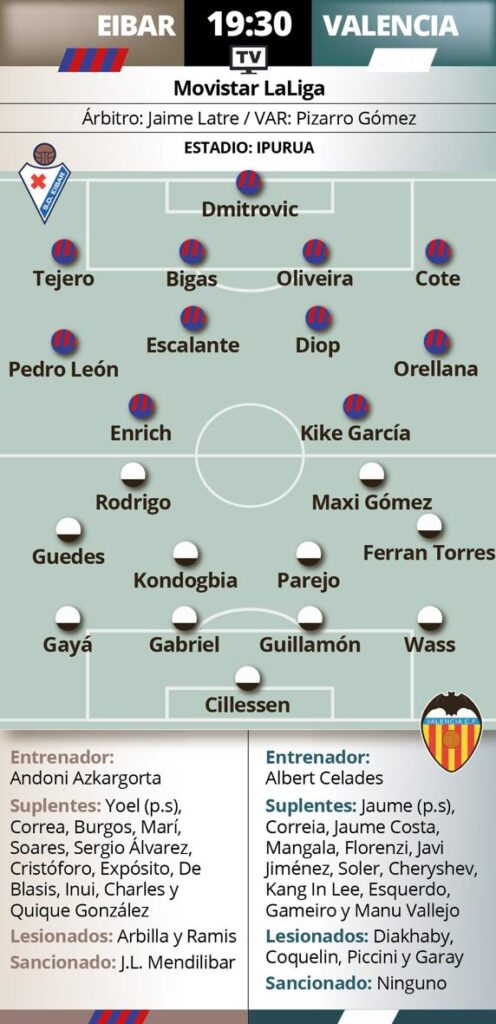 La zona defensiva es la que más dudas genera en el Valencia. Diakhaby y Coquelin son baja, además de Piccini y Garay, lesionados de larga duración. Una llaga en la que el Eibar tratará de meter el dedo. Dos de sus delanteros, Kike