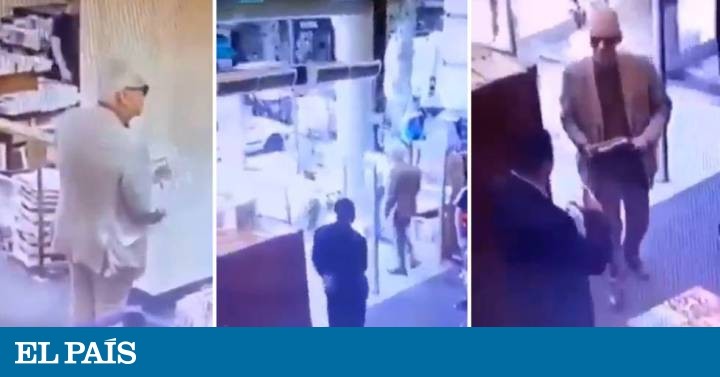 Varios momentos del hurto de un libro por parte del embajador mexicano en Argentina en una librería de Buenos Aires.