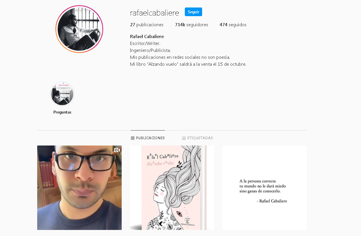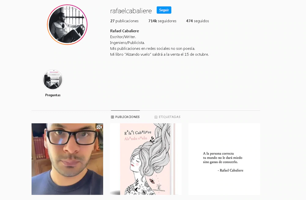 Tiene “un tinte juvenil y motivador, fresco y urbano, con cientos de miles de seguidores”. Así comunicó el sello Espasa del grupo Planeta la decisión de entregar la tercera edición de su premio EspasaEsPoesía, dotado con 20.000 euros, a un “escritor, ingeniero informático y publicista”, que se hace llamar Rafael Cabaliere y que, efectivamente, cuenta con una legión de seguidores en las redes sociales. Hasta que aparezca el libro, Alzando vuelo, la mayor cualidad que se le reconoce al premiado es haber construido una audiencia exorbitada: cerca de 900.000 seguidores en Twitter y algo más de 700.000 en Instagram.Diez días después de la concesión del galardón y tras un revuelo mayúsculo por la calidad de los escritos que presenta el premiado en sus redes sociales, Espasa pidió hoy a Cabaliere que se grabara un vídeo desde Venezuela, país donde supuestamente reside, y en cuyos círculos literarios nadie parece conocerle, para demostrar su mera existencia. Se pretendía zanjar así la sospecha de que se tratara de una máquina programada para boicotear al premio poético, y que lo escrito era una mera combinación algorítmica. A media tarde, ha aparecido el protagonista: “Meses antes de presentarme soñé que lo ganaba. Los sueños se cumplen”, dijo en un vídeo difundido por él mismo y por Espasa.Cabaliere no tiene obra conocida, al menos en España. “En Venezuela, no sabemos”, aseguran desde Espasa. Tampoco saben si su nombre es un seudónimo. La primera vez que sus escritos impresos en forma de poemario se enfrentaron a un jurado fue junto con otros cuatro finalistas, y ante Luis Alberto de Cuenca, Ana Porto, Marwán, Alejandro Palomas y Ana Rosa Semprún, editora de la casa. El jurado falló por mayoría, no por unanimidad. “Fue por mayoría y hubo discusión. No puedo decir más. Los cinco finalistas eran flojitos”, reconoce De Cuenca, que señala que el premio busca sobre todo “el perfil en redes sociales”. Marwán asegura que no se siente cómodo y subraya que no fue unánime. Alejandro Palomas, lo mismo: “No quiero opinar sobre un veredicto no unánime”. La opción de declarar desierto el premio no se contempló.Marwán, miembro del jurado, dice no sentirse cómodo: “No fue unánime”Espasa prometió a este diario que pondría al premiado al teléfono en esta tarde. Luego denegó la entrevista, aplazada hasta el 15 de octubre, momento del lanzamiento del libro. Semprún, directora general de Espasa, rechazó asimismo responder a las preguntas de EL PAÍS sobre este caso, que cuestiona la credibilidad del premio literario.“Los nuevos escritores piensan que no serán publicados porque tienen pocos seguidores en sus redes sociales. Se ha convertido en una obsesión del novel. Este tipo de estrategias demuestra que hay gente con poco talento literario, pero mucho para hacer marketing de sí mismo”, asegura Luna Miguel, poeta y editora de Caballo de Troya. “Exista o no, se ha premiado algo ajeno al contenido del libro. Lo puedo decir sin haberlo leído y tras ver otros premios y otras publicaciones del sello”, añade Miguel. La editorial Espasa confirma que el poemario será similar a lo que muestra en sus redes sociales, versos como: “Porque hay días que tu mejor opción es irte a dormir, durmiendo las cosas no pesan, no duelen, no cansan”, puede leerse en uno de los fragmentos subidos a Instagram. Cabaliere aclara en este perfil que sus publicaciones en redes sociales “no son poesía”.La cuenta de Twitter que luego se convirtió en @rafaelcabaliere se creó en febrero de 2011. Entonces tuiteaba como @elperrocriollo, según Twitter, que permite trazar los cambios de nombre de una misma cuenta con una sencilla búsqueda. En septiembre de 2017, Cabaliere borró los tuits anteriores y cambió de estrategia. Por las respuestas y las menciones que recibía en los años anteriores el contenido general de los tuits era similar al actual.En su nueva vida, la constancia es esencial. Su cuenta saca un tuit temprano por la mañana, hora venezolana, y apenas tiene más actividad. Lleva poco más de 1.300 tuits en tres años. Cabaliere sabía aparentemente qué quería y qué funcionaba en esa red social. Al principio enlazaba una cuenta de Instagram, ahora inactiva, o sus mensajes borrados. Hoy no hay ninguna referencia en la cuenta de @rafaelcabaliere a “Venezuela” o “Maduro”. No está claro que en su época anterior no la hubiera.“Me recuerda a lo de Manuel Bartual en su día: viralización pura y dura porque gusta el contenido y se expande. ¿Qué explicación tiene? Ninguna. ¿Se puede replicar? Difícil, ya me gustaría saber a mí cómo funciona la cabeza de la gente”, dice María Bretón, responsable de social media de la agencia de medios GroupM.La mayor rareza en estos años es la diferencia entre sus tuits. Algunos apenas tienen unas docenas de retuits y, al día siguiente, otros viralizan con 2.000 o 3.000 retuits. Los expertos ven posible un comportamiento orgánico tan desigual, y es además difícil de demostrar trampas en tuits específicos. El fenómeno de Cabaliere no es muy extraño para especialistas en influencers y redes sociales. La constancia y la viralidad pueden llevar a tener cientos de miles de seguidores en un tiempo.En Instagram su despegue es incluso más espectacular: 27 capturas de pantalla con sus versos le han llevado a más de 700.000 seguidores. “Las métricas no me parecen extraordinarias. La correlación entre comentarios y likes es un poco baja pero entra más o menos dentro del orden. Quizá le sigue gente algo mayor que es menos dada a comentar a los niveles de los más jóvenes en TikTok”, dice Jesús San Román, cofundador y CEO de Binfluencer.