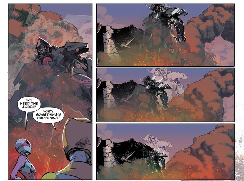Entre las ideas clásicas reinventadas para lo moderno guardabosques la franquicia entra Poderosos Power Rangers de Morphin #4 de Kyle Higgins, Hendry Prasetya, Matt Herms y Ed Dukeshire, que le da un giro a Zords vs. Monsters. Hubo un momento en que Zordon pronunció una regla completa en el universo para que los Rangers no sacaran sus Zords hasta que creciera un monstruo. La introducción del Dragón Negro le da un giro a esa dinámica de una manera que tiene importantes implicaciones en la diferencia entre los héroes y villanos de este mundo..
