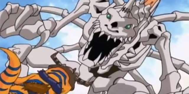 El personaje presentado aquí, SkullGreyMon, surgió gracias al miembro de Digi-Destined, Tai, que estaba obsesionado con amplificar el poder de su Agumon. En un intento de obligar a Agumon a evolucionar, con una parte de su plan siendo alimentar al pobre monstruo digital a un ritmo constante, las cosas toman un giro horrible. En lugar de convertirse en un monstruo controlable y poderoso, el pequeño dinosaurio se convirtió en esta terrible monstruosidad y casi destruyó a los niños protagonistas.