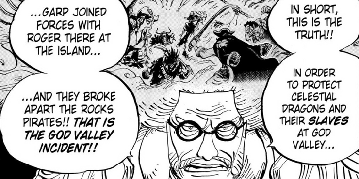 Rocks D. Xebec y su tripulación eran tan poderosos y peligrosos que el Gobierno Mundial se sintió directamente amenazado por ellos. Treinta y ocho años antes de los eventos actuales en el manga, atacaron a un grupo de Nobles Mundiales y sus esclavos en God Valley, y en el mundo de Una pieza atacar a un Noble Mundial se considera una ofensa imperdonable. No está claro cuál era su objetivo, pero esto hizo que el Rey Pirata Roger y el “héroe de la Marina” Garp formaran una alianza, lo que llevó a la derrota de los Rocks y la muerte de Xebec.