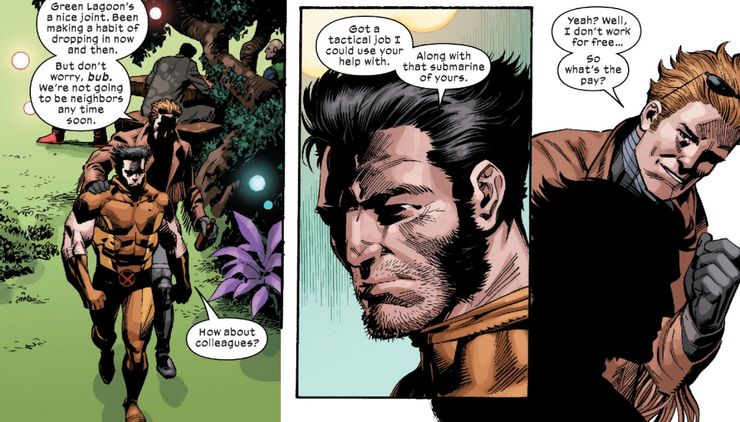 En Lobezno # 18 por Benjamin Percy y Lan Medina, Wolverine se encuentra nuevamente en una situación similar de falta de personal, listo para investigar una amenaza al juego farmacéutico de Krakoa con solo Domino a su lado. Cuando ve a Maverick, un viejo conocido, lo recluta y le paga por unirse a la misión, lo que demuestra que X-Force es tan difícil para los miembros del equipo que el freelance ahora es una opción. Esto, junto con el deterioro moral de Beast, son solo algunos de los factores que erosionan el brillo de X-Force como una operación de élite. Dado que casi todos los que se supone que son miembros activos de X-Force aparentemente han tenido otras prioridades últimamente, el equipo está perdiendo una parte crucial de lo que lo hizo tan efectivo.