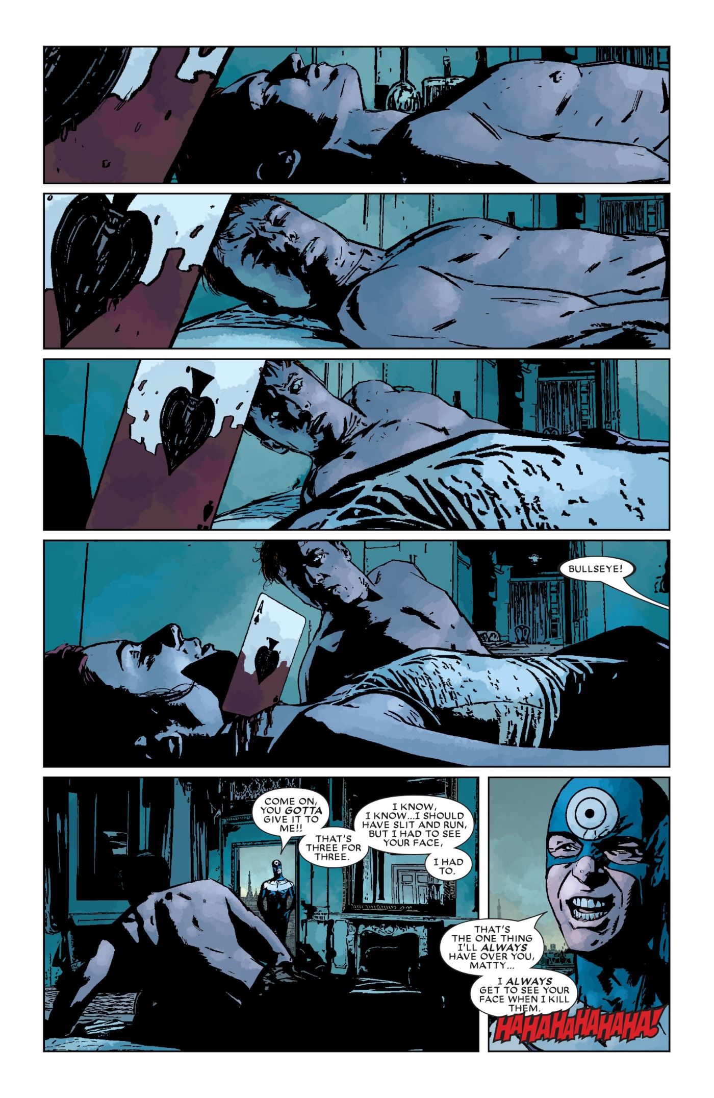 Uno de los peores enemigos con los que Matt ha luchado es Bullseye. Bullseye a menudo ha sido comparado con el Joker de DC, pero resulta que Bullseye es mucho peor. En última instancia, Joker quiere presionar a Batman para que rompa su única regla contra el asesinato. Sin embargo, ese objetivo tiene que ver con facilitar la corrupción de Batman. Lo que Bullseye quiere es simplemente torturar a Matt por existir. Matt se ha enamorado de varias mujeres a lo largo de los años, como Karen Page, Elektra y Milla Donovan. Bullseye ha matado a los dos primeros e intenta matar a Milla cuando se expone la identidad de Daredevil. Parece que el hábito de Bullseye de matar a los seres queridos de Matt ha dejado un trauma significativo en Daredevil, mucho más grande que cualquier cosa que el Joker le haya hecho a Batman.