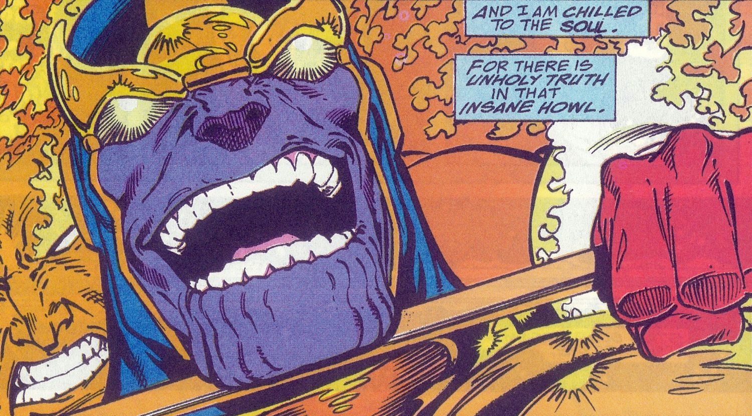 Este es el tipo de detalle menor que se pasa por alto en la narración de cómics, que comprensiblemente se esfuerza por lograr una grandeza de alcance y un alto nivel de espectáculo que dejan poco tiempo para representar a sus villanos cósmicos haciendo uso de hilo dental. Considere que la historia de fondo de Thanos involucra que se enamore de la propia Muerte, eventualmente muera por ella y, a su vez, resucite en una nueva versión de su cuerpo, a un nivel de poder que excede incluso su formidable fuerza anterior, y presumiblemente, en un pico físico aún mayor en todos los sentidos. Se trata de una idea enorme y épica, que deja muchas de sus implicaciones particulares a la imaginación de los lectores.