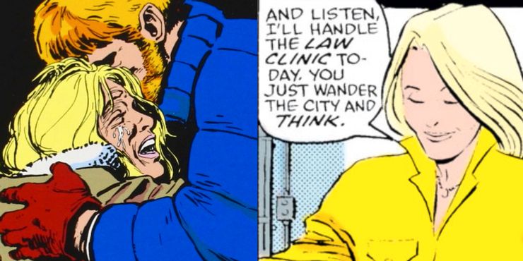 La mayor corrección de la relación de Karen Page y Matt Murdock en Ann Nocenti Temerario fue que convirtió a Matt en un héroe no porque estaba con una “mujer caída” como Karen, sino porque estaba directamente involucrado con los servicios de asistencia legal que ella estaba brindando a la comunidad de Hell’s Kitchen. La clínica de Karen ayudó a trabajadoras sexuales, personas con adicciones a las drogas, personas que trataban con propietarios depredadores y más, y les dio las herramientas para navegar en un sistema creado en su contra. Esto está más en línea con la esencia de lo que hace de Daredevil un héroe único, ya que trata de negociar entre su sentido personal de justicia, basado en sus creencias católicas, con la visión estatal de la justicia, tal como está escrito en la ley. Y aunque Matt estuvo lejos de ser perfecto, ya que engañó a Karen con Typhoid Mary a partir del número 254, con John Romita, Jr., Al Williamson y Christie Scheele, sus desaires fueron obra suya, en lugar de atribuirse a un personaje femenino de forma moralista.