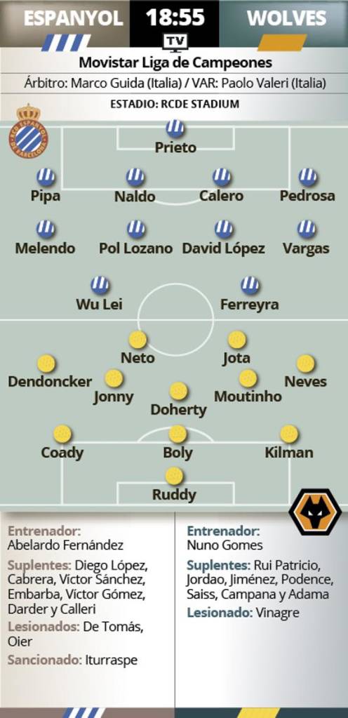 Caer eliminado, es lo más probable, pero con la cabeza alta y volver a enganchar a la afición es el reto para esta noche, pues a nadie gusta decir adiós a Europa, pero ahora hay una prioridad, LaLiga y salir de la zona de descenso. De ahí que hoy, pese a intentar dar una buena imagen ante el Wolves, Abelardo tendrá un ojo pendiente del Atlético, el rival que vendrá al RCDE Stadium el domingo.