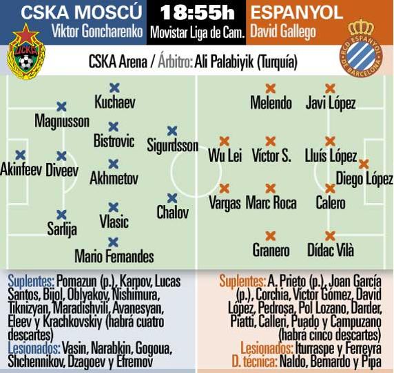 Será la primera vez que CSKA Moscú y Espanyol se enfrentan en partido oficial, pero sí existe un precedente de visita perica a la capital rusa. Fue en la fase de grupos de la Europa League de la temporada 2005/06, ante el Lokomotiv y con triunfo por 0-1 con gol de Tamudo. La expedición perica a buen seguro que firmaría que se repita el resultado.