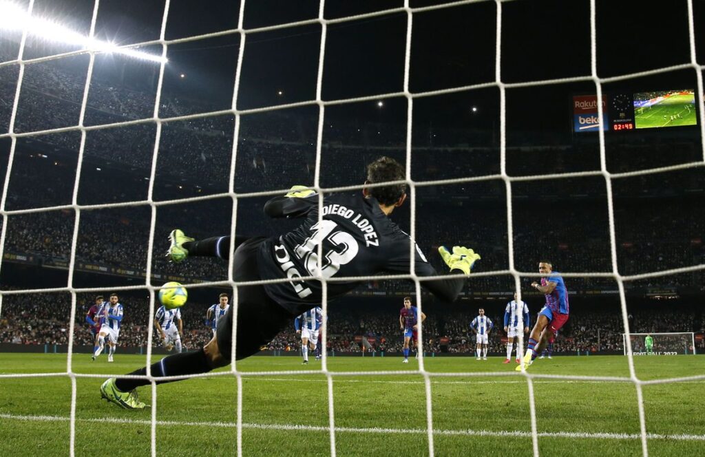 Ya familiarizado con el balón y recuperado su ideario, el Barça extraña por contra a los jugadores extranjeros que marcaban la diferencia con o sin Messi. No hay delanteros y los medios se exhiben a título individual sin que ayuden al colectivo en los goles: no los marcan ni ayudan a evitarlos con o sin Xavi. Los interiores azulgrana presionaban, la velocidad de balón también era notable y, sin embargo, si había un jugador al que se relacionaba con el gol era Raúl de Tomás. El ariete se ofrece siempre, llega y chuta, indetectable para la mayoría de defensas, también para Mingueza. El internacional blanquiazul buscó en cuanto pudo el costado derecho barcelonista en un intento de acabar con el fútbol acomplejado del Espanyol.