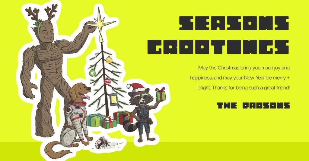 Según el comunicado de prensa, “Si bien las tarjetas navideñas clásicas a menudo se ven mejor en un manto, son las personalizadas las que la gente tiende a recordar. ¿Qué mejor manera de difundir alegría a través de la galaxia en esta temporada navideña que con una tarjeta temática? Con la plataforma Shutterstock Creative Flow , los fanáticos pueden crear sus propias tarjetas navideñas personalizadas y gratuitas usando una de las más de 40 plantillas de “Guardianes de las cartas”. ¿Tienes un fanático de Marvel en tu vida que estás tratando de impresionar? Solo dirígete a la Sitio web de Shutterstock ¡y sigue las instrucciones para comenzar!”