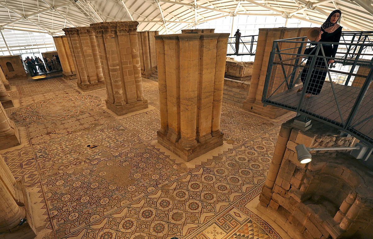 La Administración jordana, que sucedió a la británica en 1948, emprendió una rehabilitación en 1966, cuando se reconstruyeron los pilares de piedra arenisca de la sala de audiencias entre los 38 sectores de mosaicos que integran un pavimento continuo. Pero un año después, la ocupación de Cisjordania por el Ejército de Israel hizo que el palacio cayera de nuevo en el olvido. “En 1994 se instauró la Autoridad Palestina, aunque hasta 2010 no se pudieron iniciar los trabajos”, recuerda Hamdam. Para entonces el monumento se hallaba ya en riesgo de desaparición. En 2016 los mosaicos fueron exhibidos al público durante un corto periodo antes de que se volvieran a ocultar para abordar las obras de cubrimiento, cuya conclusión se vio aplazada por la pandemia.