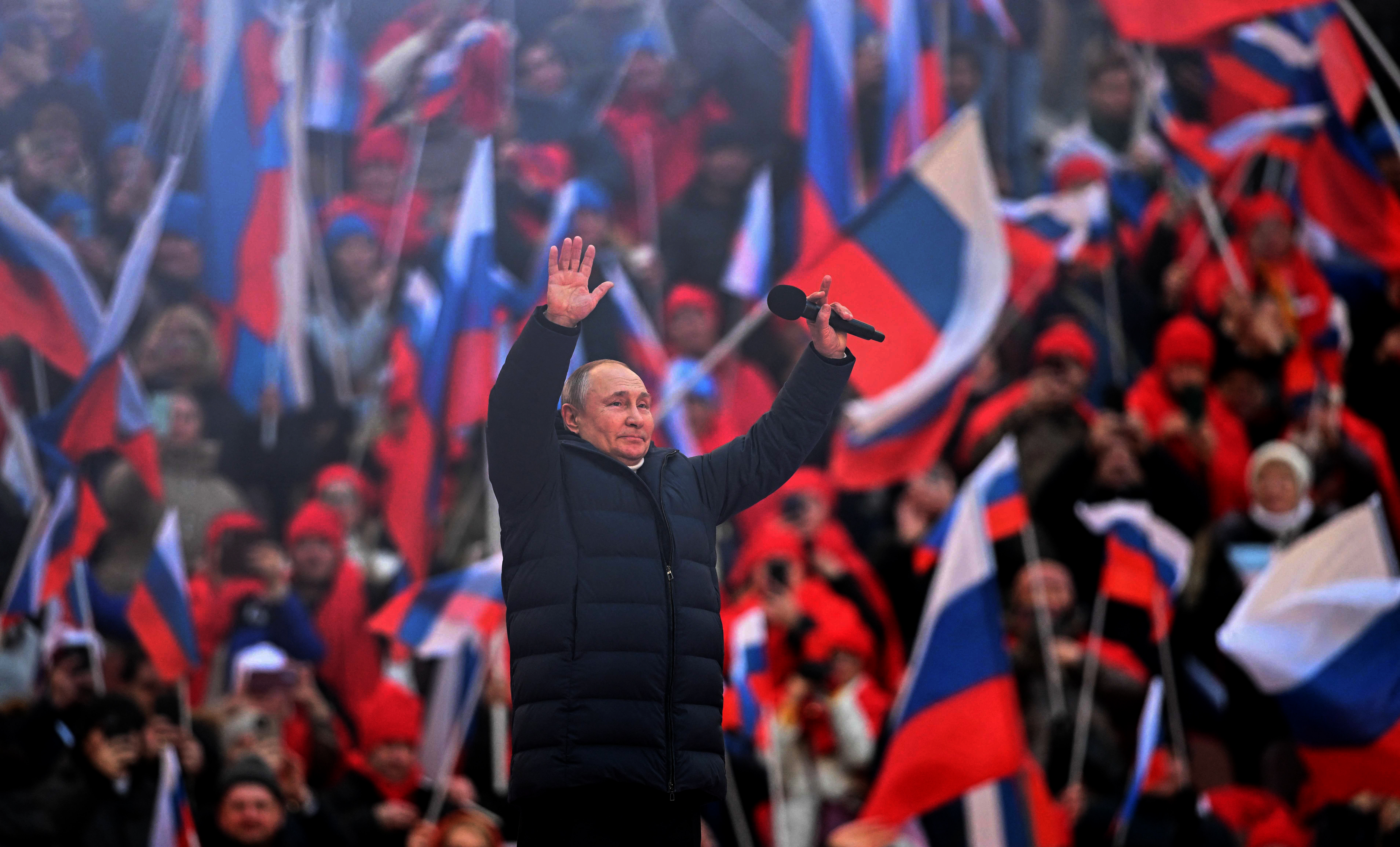 La tarde del viernes el esquizofascismo se desplegó en Moscú de manera total. Con el pretexto de la conmemoración de la anexión ilegal de Crimea en 2014, el Kremlin organizó un acto de masas en el gran estadio deportivo del complejo olímpico de Loujniki ―donde en 2018 se jugó la final del Mundial de fútbol (los rublos, los oligarcas, el fútbol)―. El estadio lo llenaron 80.000 personas y en sus alrededores miles de personas más seguían el desarrollo del espectáculo a través de pantallas gigantes o atentos a las intervenciones en escenarios complementarios; muchos de los asistentes, según periodistas occidentales, acudían obligados. El acto, desde un punto de vista estético, parecía un cruce entre una performance ideada por una Leni Riefenstahl kitsch y un festival de Eurovisión con exaltación militar. Los encargados de presentar a Putin llevaban cosida en la ropa una Z, el símbolo de apoyo al Ejército invasor. Y en la intervención del presidente ―el día después de proclamar “la necesaria y natural autopurificación de la sociedad”, como Hitler señalando a los judíos―, justificó la guerra como una acción para impedir un genocidio.