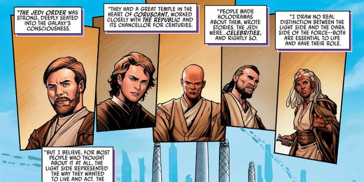 En este número se revela que la gente de toda la galaxia no solo admiraba a los Jedi, sino que mitificaba sus hazañas heroicas. Se escribieron historias sobre los Jedi y holodramas que detallaban sus aventuras. Los Caballeros Jedi no fueron considerados monjes o incluso soldados una vez que comenzaron las Guerras Clon, sino leyendas vivientes reales que se volvieron tan populares que casi todos en la galaxia sabían quiénes eran, especialmente los más populares. Esta explicación muestra exactamente por qué Obi-Wan se quedó atrapado viviendo como un ermitaño en Tatooine. Si Kenobi hubiera tratado de esconderse a simple vista dentro de la sociedad, seguramente habría sido reconocido por alguien que vio una de sus misiones dramatizadas en un Holodrama.