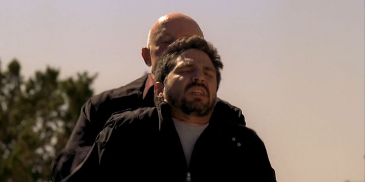 Por regla general, Gustavo Fring no es un hombre que disfrute ensuciándose las manos. Exhibiendo tendencias obsesivo-compulsivas (incluido el lavado de manos), Gus prefiere dejar que los empleados derramen sangre en su nombre. Sin embargo, Breaking Bad demostró la capacidad de Gus para la violencia de la manera más impactante posible cuando el villano atravesó la garganta de Víctor con un cortador de cajas como castigo por haber sido descubierto descuidadamente en la escena del crimen. La muerte de Víctor no solo fue sorprendente por los cubos de sangre que brotaron, sino porque Gus, típicamente tan imperturbable y reservado, fue el responsable de la horrible exhibición. Mejor llamar a Saul El episodio 8 de la temporada 6 demuestra que esta racha asesina siempre ha estado al acecho en lo más profundo de Fring.