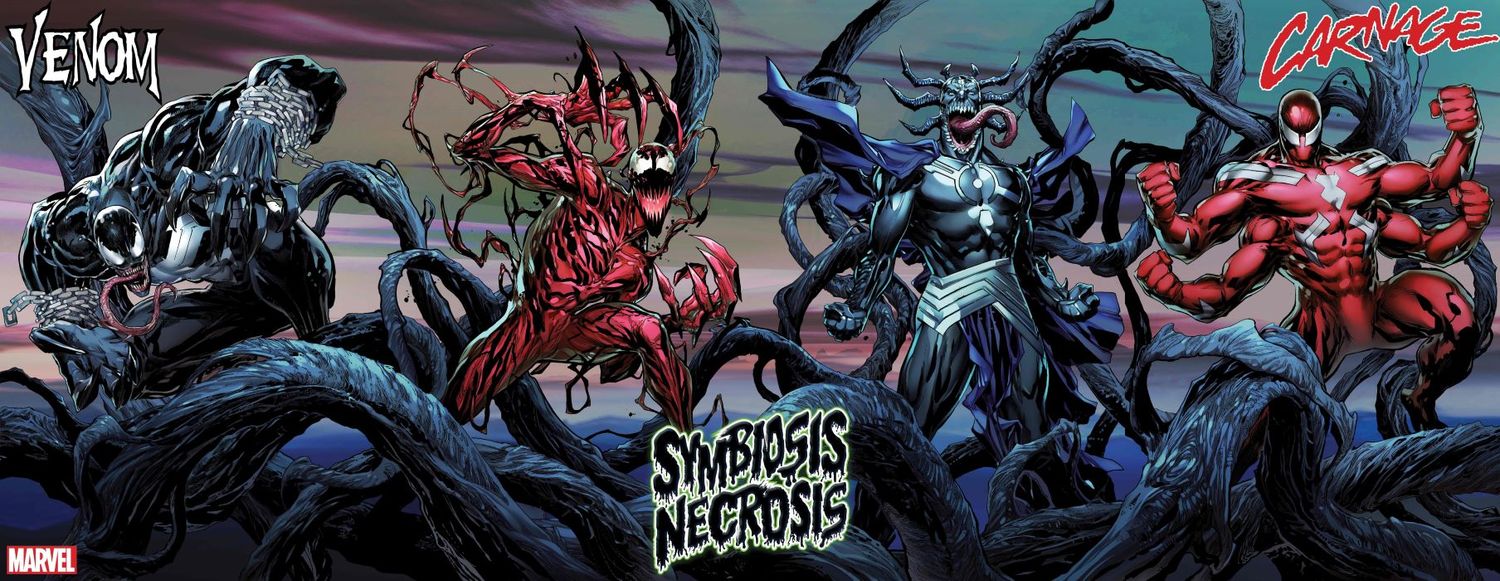 Necrosis simbiosisun crossover de cuatro partes dirigido por los escritores Torunn Grønbekk y Al Ewing y los artistas Ken Lashley y Pere Pérez, unirá los dos títulos de simbiontes en curso de Marvel, Veneno y Carnicería. El evento comienza con Veneno #31 el 6 de marzo de 2024, seguido de Carnicería #5 el 13 de marzo Veneno #32 el 3 de abril, y Carnicería #6 el 10 de abril.