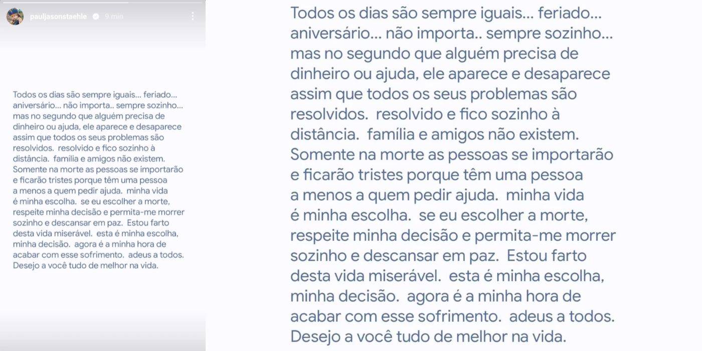 En la nota, el Prometido de 90 días El alumno de la franquicia escribió: “Sólo en la muerte la gente se preocupará y se entristecerá porque tiene una persona menos a quien pedir ayuda”. donde sugiere que sólo en la muerte la gente se preocupa y se entristece porque tiene una persona menos a quien pedir ayuda. Paul admitió que estaba cansado de su vida miserable y se despidió de todos.
